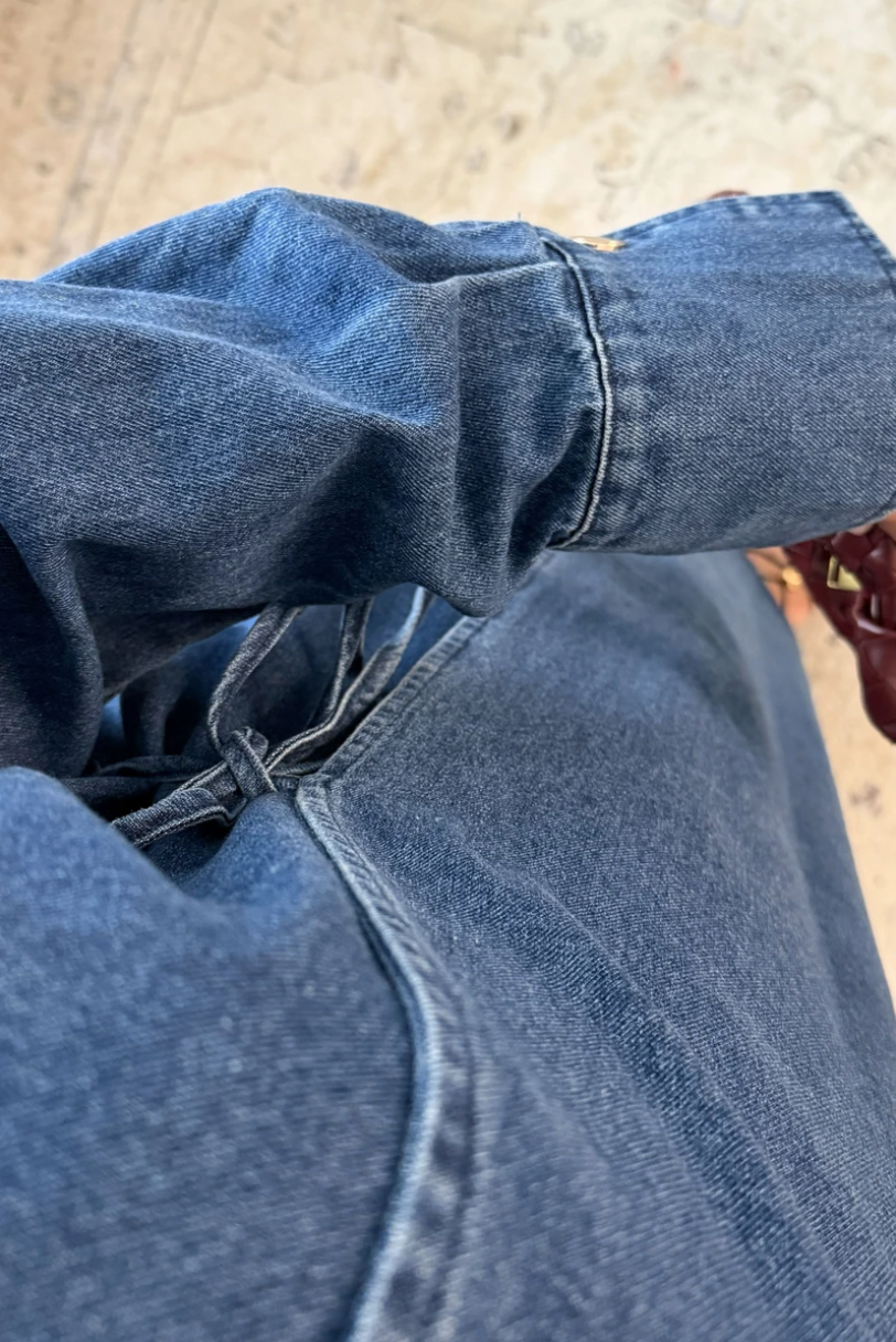 Ontdek de Denim Tie Dress van ELAHA: een elegante en moderne denimjurk die gemakkelijk stijl en comfort verspreid. Deze lange wikkeljurk heeft een rechte, losvallende pasvorm die zorgt voor een verzorgde en bescheiden uitstraling, terwijl de zachte 100% katoen zorgt voor een frisse en comfortabele draagervaring.